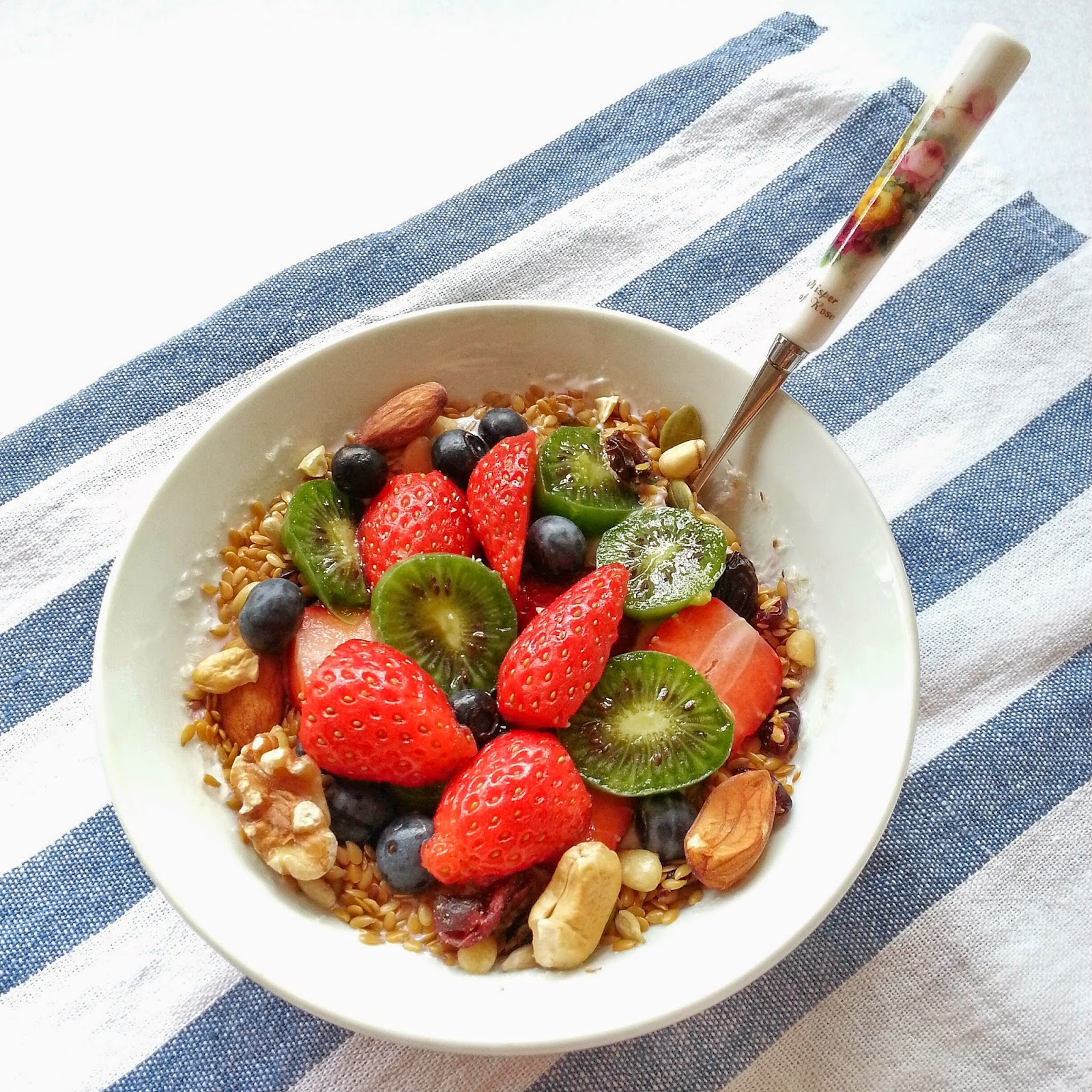 Yogurt, berries, fresh fruits and granola are my favorite favouritee favouriteeee food in the planet!!!